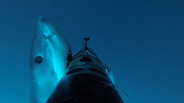 When the shark realises the vehicle is not food it begins to attack it and mark its territory. The video could help reveal how sharks hunt in the water